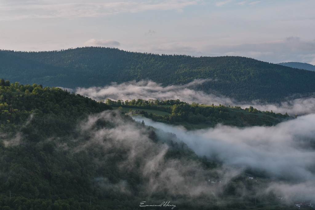Ce matin la je suis parti un peu sur un coup de tête : envie de me balader en forêt avec l’espoir d’y trouver cette ambiance que j’aime beaucoup : la brume et le soleil qui jouent ensemble à travers les cimes des arbres. Mais (il y a toujours un « mais ») ce n’est pas ce que la nature avait décidé…en tout pas pas là uù j’avais décidé d’aller me balader.