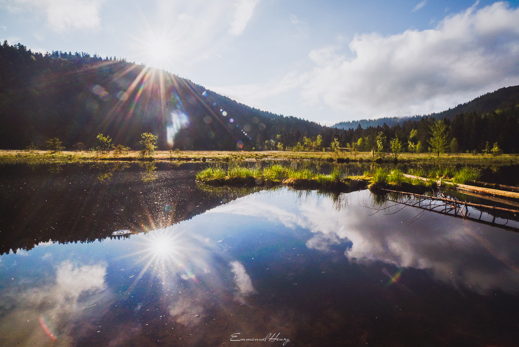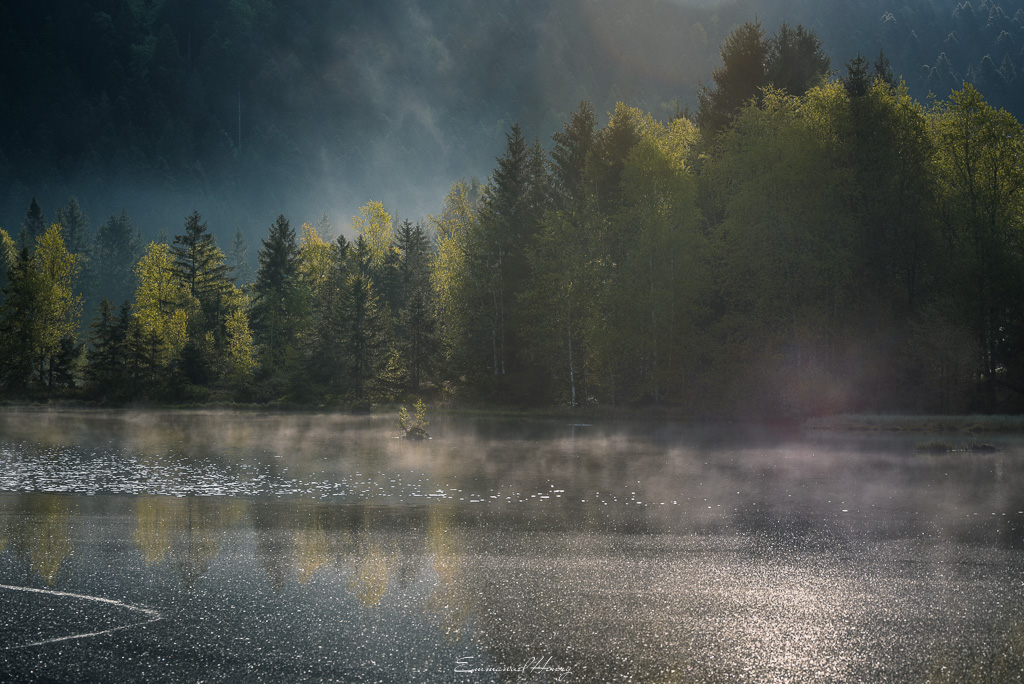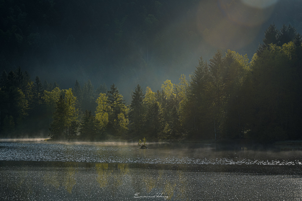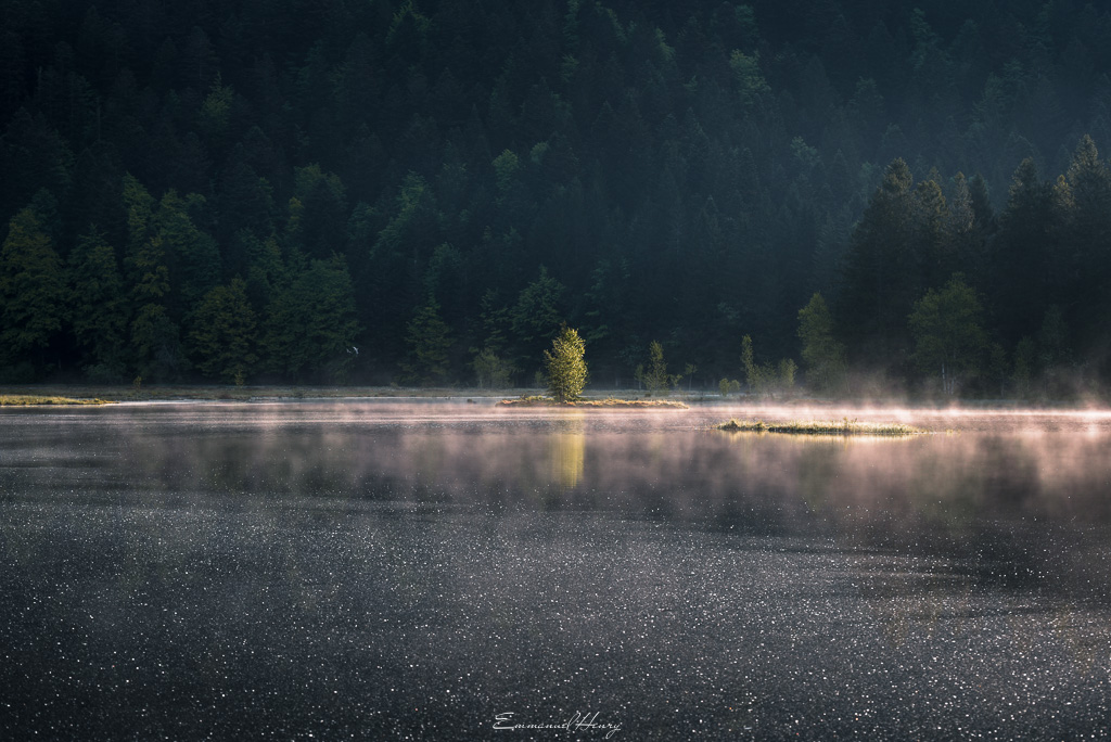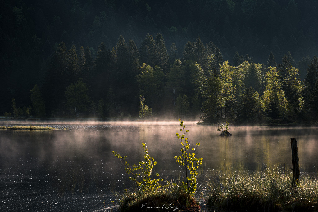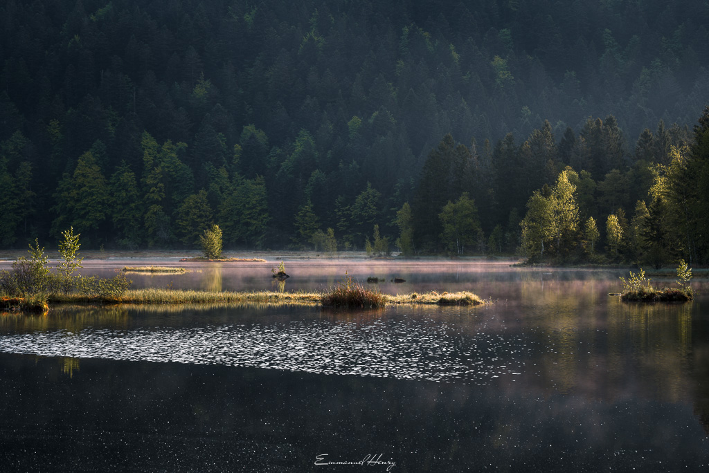 C’est comme ça que je me suis retrouvé à un tout autre endroit que celui initialement prévu. Un endroit que j’aime beaucoup…où le temps s’est un jour arrêté pour laisser place à ces magnifiques paysages. J’y ai trouvé « par hasard » l’ambiance que je cherchais, même si la brume glissant sur l’eau y est souvent plus présence. Ce jour la, tout était en subtilité : la lumière, la brume, le chant des oiseaux, la fraîcheur matinale et les gouttes de rosée qu’elle avait laissé sur les herbes et les arbres.