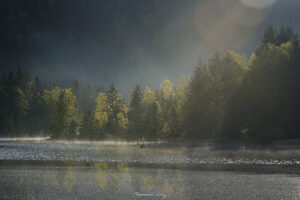 Ces matins de début avril, je suis sorti tôt. Le soleil n'était pas encore haut mais il se faufilait déjà entre les troncs des sapins, dessinait des couloirs de lumière sur le sol encore froid. Une brume légère traînait au fond de la forêt, pas assez dense pour tout cacher, juste assez pour donner au regard un endroit où s'arrêter.