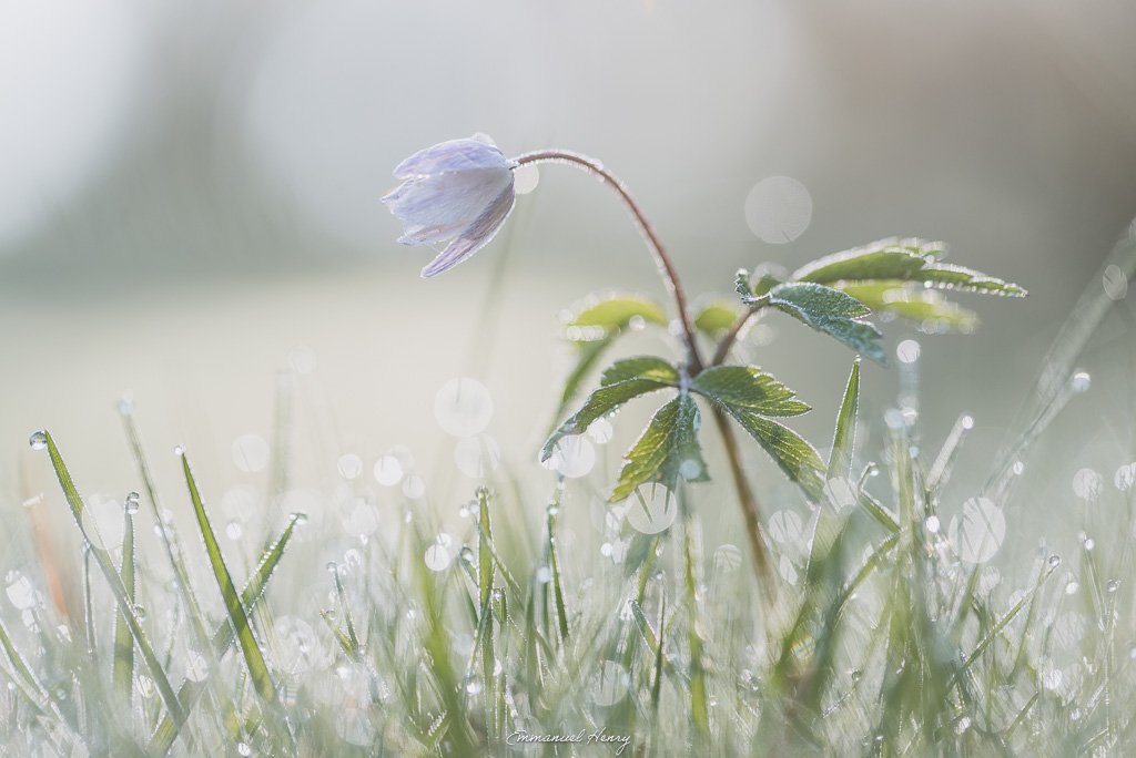 Et parlons des anémones… Une était encore couverte de perles d'eau, éclairée par la lumière du matin comme si rien d'autre n'existait autour. L’autre, un ruisseau derrière elle. Et dans ce ruisseau, les reflets du soleil qui créaient un fond que je n'aurais pas pu imaginer. Certaines images n'ont pas besoin d'être construites. Il suffit de se placer au bon endroit, et de ne pas bouger (ni tomber d’ailleurs, et ça, c’est tout de suite moins simple).