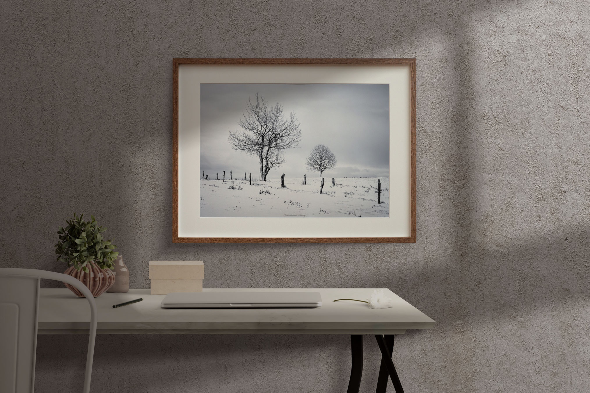 Dans le silence immaculé de l’hiver, deux arbres se font face, témoins d’un monde suspendu entre rêve et réalité. « Deux silhouettes d’un autre Monde » invite à la contemplation, à la douceur, à la paix intérieure. Un tirage d’art minimaliste qui apportera une touche de pureté et de sérénité à votre intérieur.